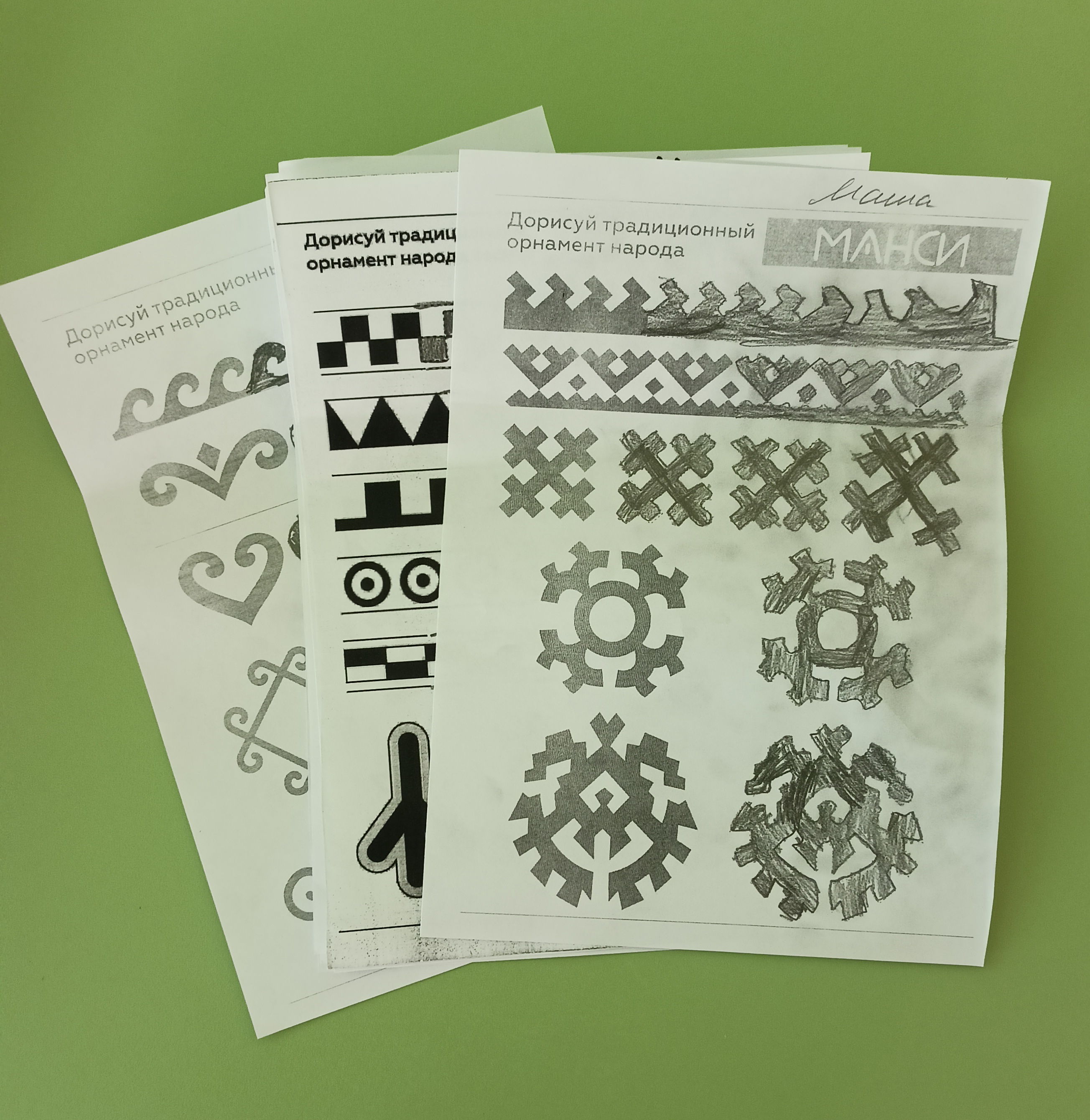 Чтобы закрепить знания, мы разработали специальные прописи с орнаментами изучаемого народа. Дети: