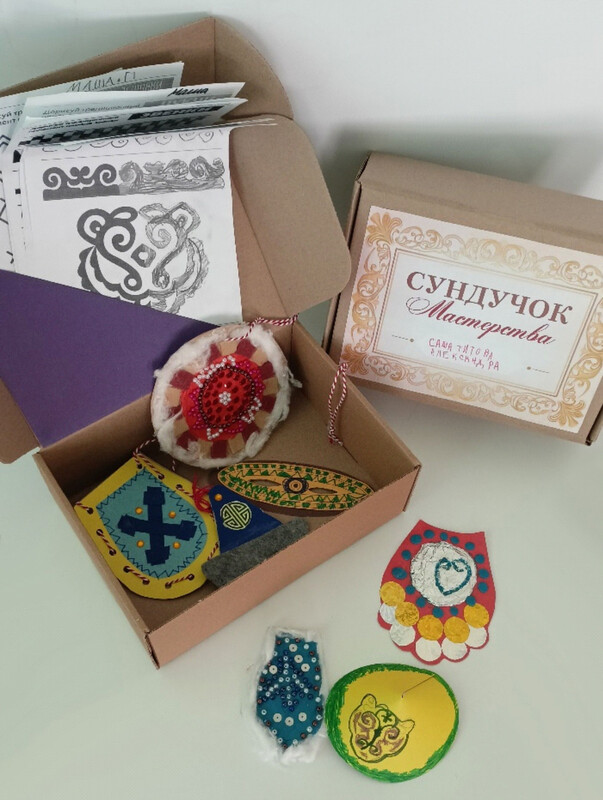 Завершающий этап — создание поделки: элемента национальной одежды с использованием изученного орнамента или предмета быта. Дети мастерили: нагрудники, сумки, фартуки, ковры, обереги, головные уборы.