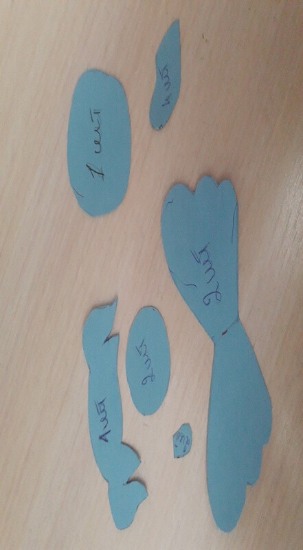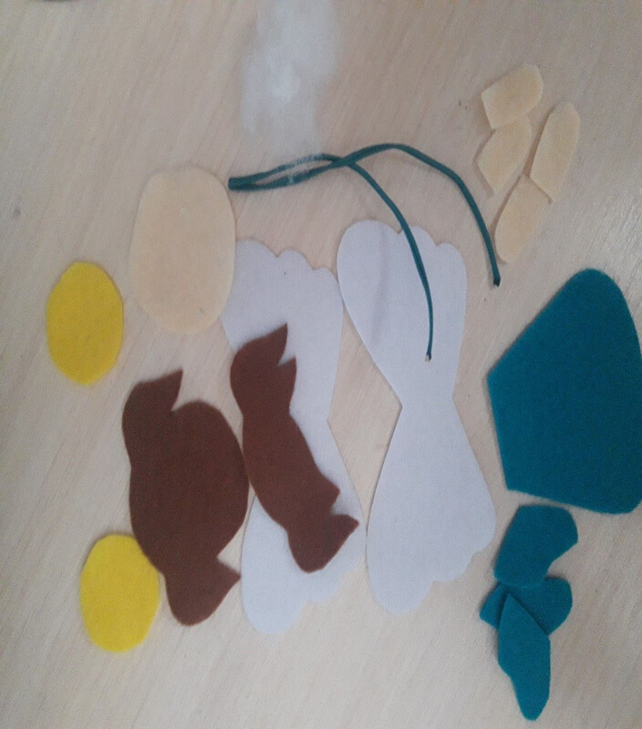 2. Изначально для создания ангелочка нам понадобится: шаблоны деталей (нарисованные от руки), переведенные на фетр (детали вырезаются ножницами). Сшивать детали между собой нужно оверлочным швом в ручную.