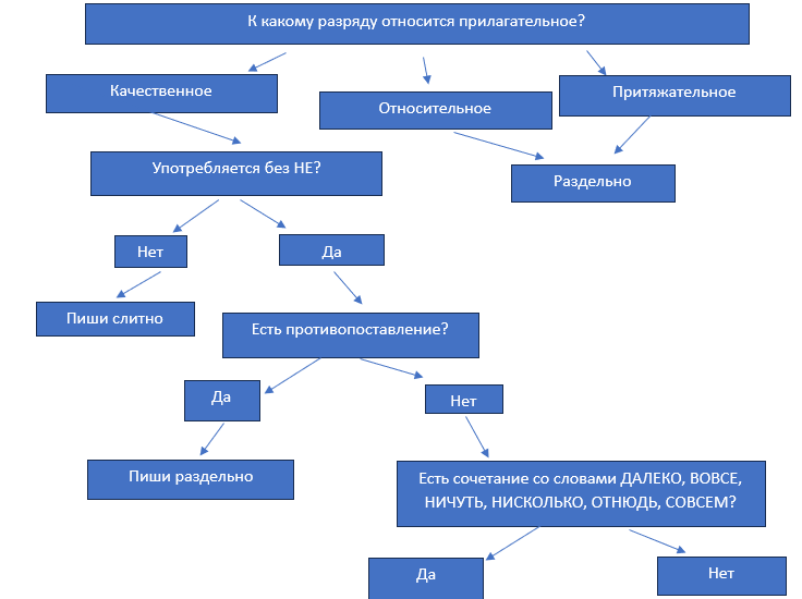Слитное и раздельное написание НЕ с прилагательными. Составление алгоритма