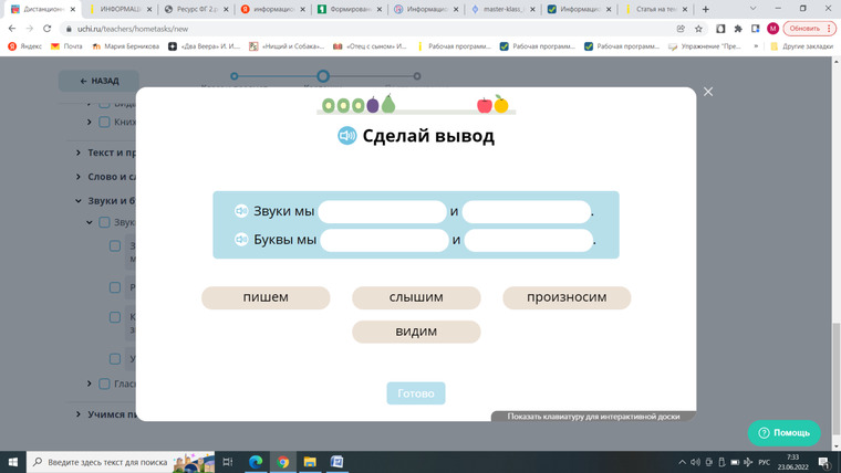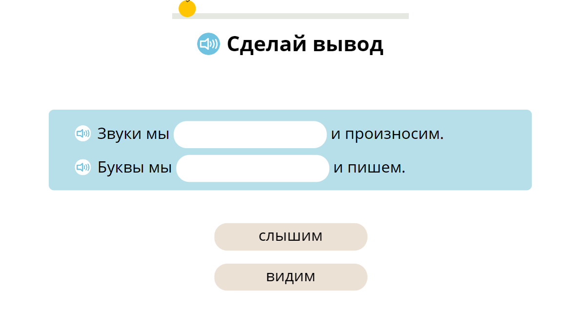 Для выполнения этого задания, обучающихся должен вспомнить, что такое буква, и что мы можем с ней сделать (написать, прочитать), а что такое звук, верно его мы слышим, говорим.
