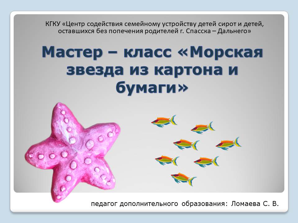 Мастер - класс по изготовлению морской звезды из картона и бумаги с применением элементов папье-маше. Материал может быть использован на уроках технологии или на занятиях в системе дополнительного образования.