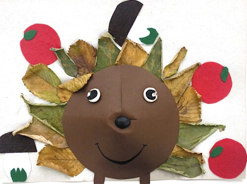 Комментарий: Поделка из осенних листьев, фетра и бумаги, сделана в технике аппликация