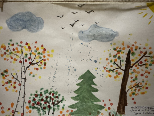 Комментарий: В работе использовали нетрадиционный метод рисования с помощью ватной палочки