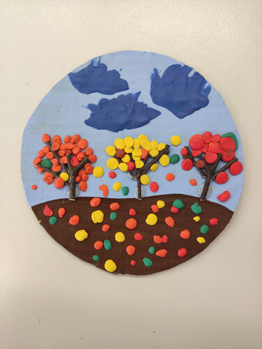Комментарий: Работа выполнена из пластилина и веток дерева на картонной основе