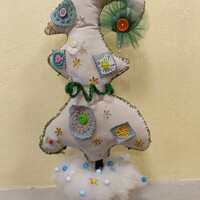 Комментарий: Елка сшитая из ткани рогожка, расписана красками по ткани