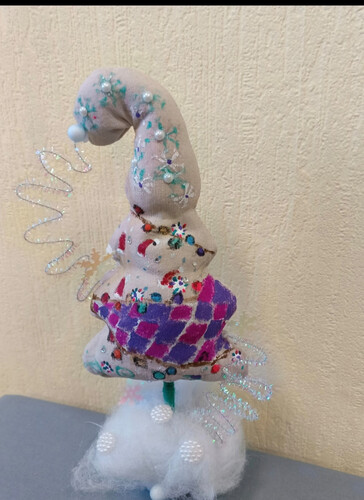 Комментарий: Елка сшита из ткани рогожка, далее расписана красками по ткани, декрирована бусинами