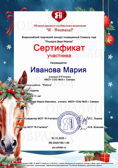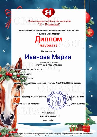 Прием работ: с 01.12.2025 по 31.12.2025 Рассылка дипломов: через 3 рабочих дня после получения заявки!