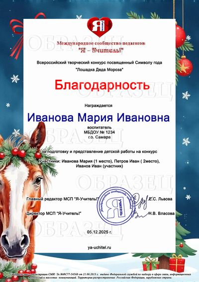 Всероссийский творческий конкурс, посвященный Символу года "Лошадка Деда Мороза"