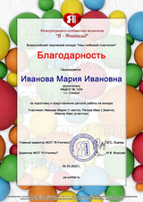 Благодарственное письмо куратору - 95 рублей за каждый электронный документ. Куратор у одной работы может быть только один и только у детских работ! Если по каким-то причинам Вы пишите несколько кураторов, в документах будет отображено только имя первого указанного куратора! Будьте внимательны!