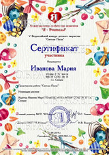 Оформление и рассылка дипломов и сертификатов на электронные адреса участников производятся на третий рабочий день после добавления Вами работы на сайт при условии получения от Вас оплаты.