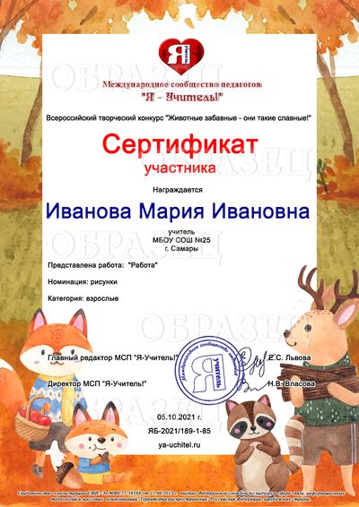 Оформление и рассылка дипломов и сертификатов на электронные адреса участников производятся на третий рабочий день после добавления Вами работы на сайт при условии получения от Вас оплаты.