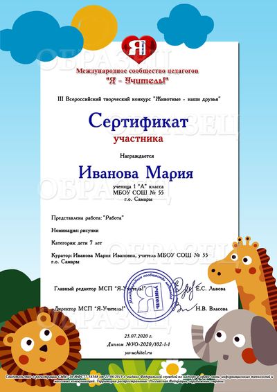 Свидетельство о публикации материала - 100 рублей. Свидетельство выдается автору работы, т.е. если автор работы - ребенок, то документ будет выдан на имя ребенка, но имя куратора при этом тоже будет отражено в документе. Если автор работы - взрослый, документ оформляется на имя этого взрослого, куратор в данном случае не пишется.