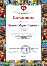 * Благодарственное письмо педагогу, заявившему 15 и более детских работ одновременно, оформляется бесплатно в электронном виде! Участвуйте группами!